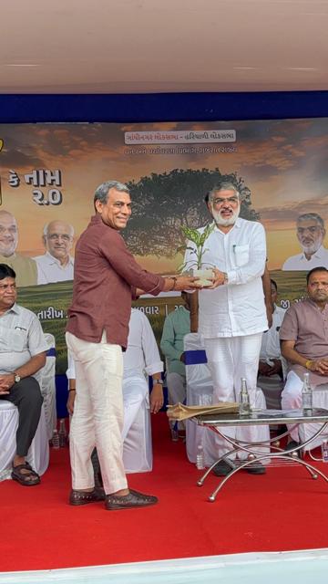 GUJARAT, GANDHINAGAR | 22nd JULY 2025: A large-scale tree plantation drive was organised in Kalol, Gandhinagar, under the ‘Ek Ped Maa Ke Naam 2.0’ initiative in the presence of Gujarat’s Minister of Forest and Environment, Mulubhai Bera.
