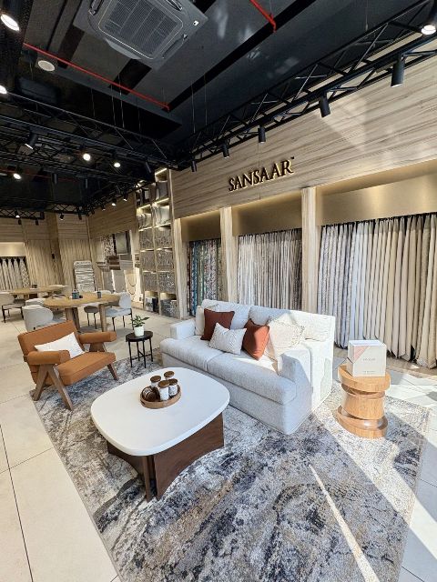 The store showcases Sansaar’s complete portfolio of over 3,000 SKUs, spanning upholstery and multi-purpose fabrics, curtains, bedding, rugs and trimmings. Designed as a comprehensive destination, it caters to homeowners, architects, interior designers and trade professionals seeking high-quality decor solutions.