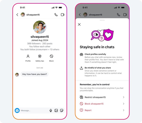 • Teen Accounts will now have new safety features in DMs, giving teens more information about who they’re chatting with.