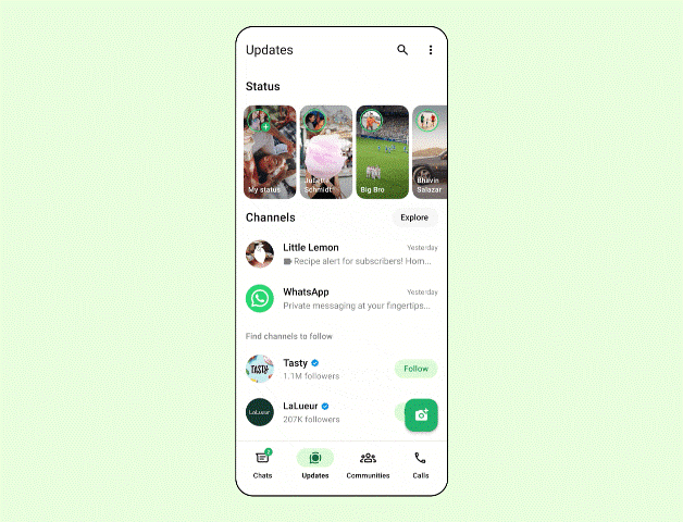 These new features will appear only on the Updates tab, away from your personal chats. This means if you only use WhatsApp to chat with friends and loved ones there is no change to your experience at all.