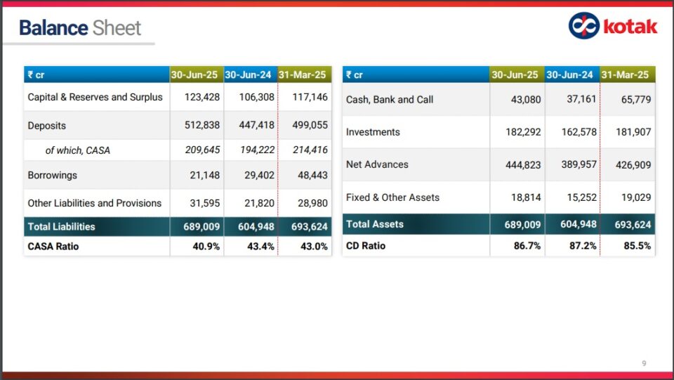 Mumbai | 26th July 2025: The Board of Directors of Kotak Mahindra Bank (“the Bank”) approved the unaudited standalone and consolidated results for the quarter ended June 30, 2025, at the Board meeting held in Mumbai, today.