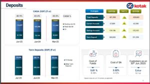 Average Term Deposits grew to ₹ 300,003 crore for Q1FY26, up 19% YoY from ₹ 251,298 crore for Q1FY25.