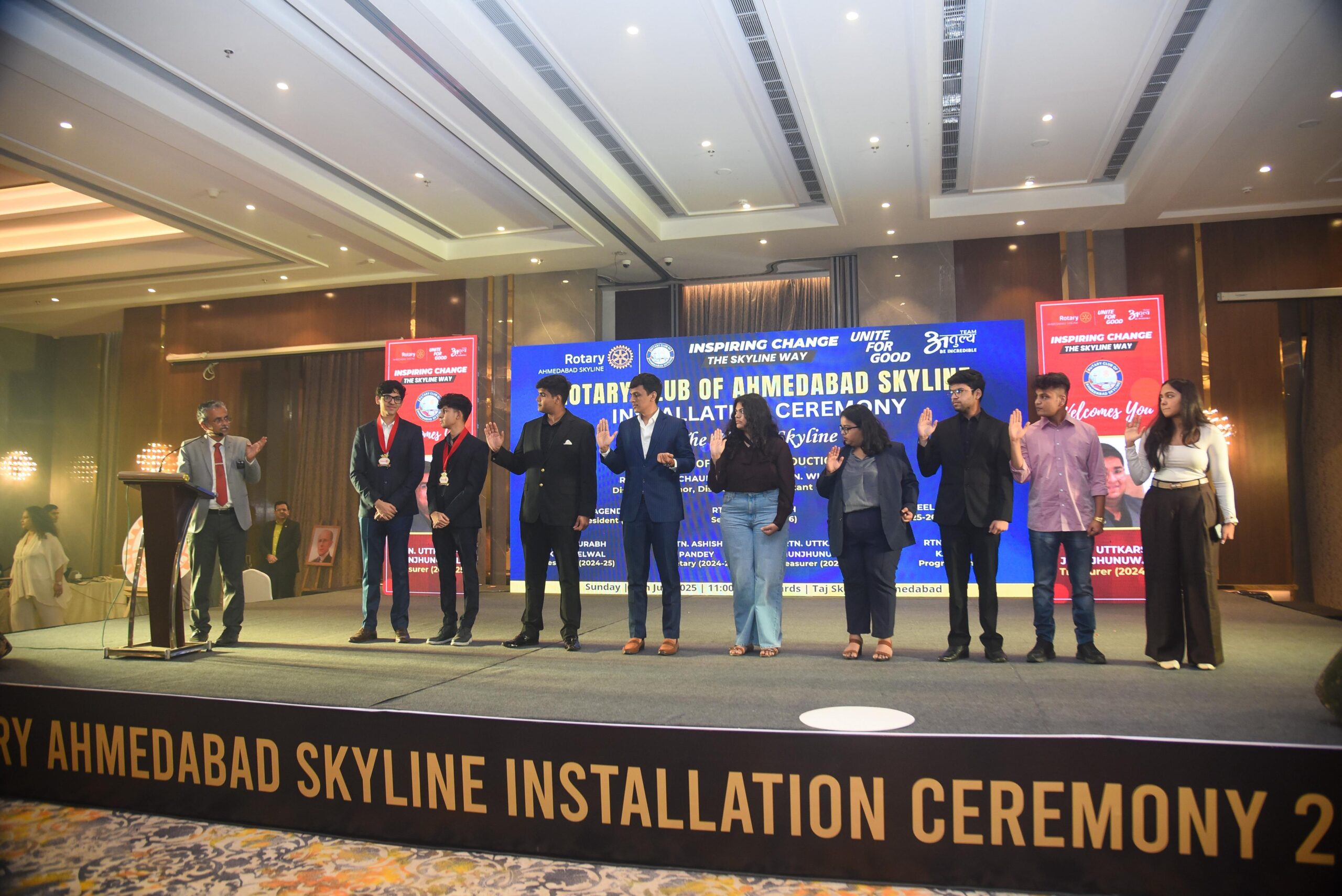 • The event also witnessed the official installation of the Rotaract Club of Ahmedabad Skyline Stars, with President Arnav Khandelwal and Secretary Hetarth Kapadnekar taking charge of their vibrant team.