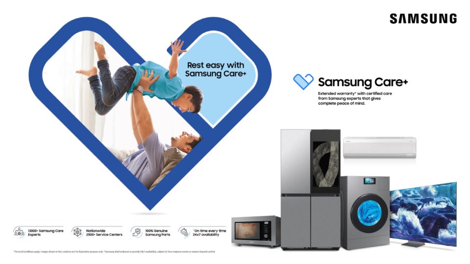GURUGRAM, INDIA | 12th NOVEMBER 2025 — Samsung, India’s leading consumer electronics brand, todayannounced the expansion of its Samsung Care+ service to include extended warranty plans for home appliances including Refrigerators, Washing Machines, Air Conditioners, Microwave ovens, and Smart TVs.  Customers can now choose from plans that range from 1-4 years, offering comprehensive protection and convenience, with prices starting as low as INR 2 per day.