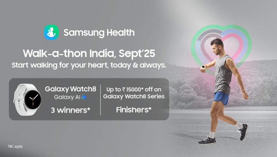 GURUGRAM, INDIA | 26th SEPTEMBER 2025: Samsung, India’s largest consumer electronics brand, todayannounced the launch of the fourth edition of ‘Walk-a-thon India’, a campaign designed to motivate India to get healthier and fitter ahead of the World Heart Day.