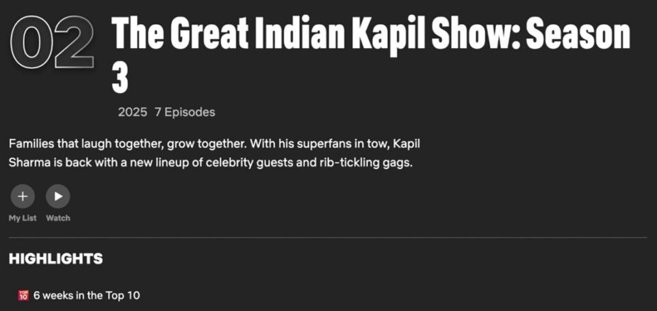 This remarkable run reaffirms Netflix India’s commitment to bringing local stories both at home and globally while celebrating entertainers who truly resonate deeply with audiences. The Great Indian Kapil Show is testament that comedy proves to be a strong draw on streaming and no one delivers it better than the comedy king himself.