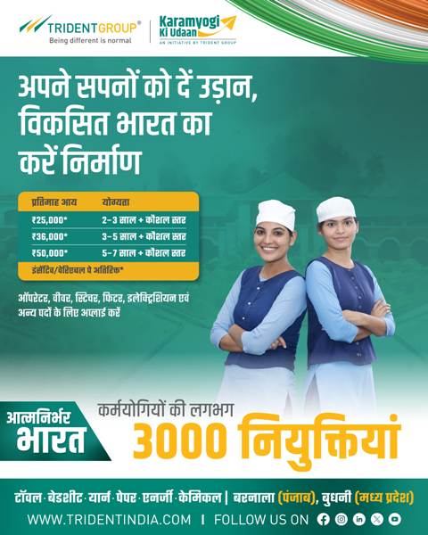 Commenting on the announcement, Pooja B. Luthra, Group CHRO of Trident Group, said, “At Trident, we firmly believe that talent forms the foundation of India’s manufacturing transformation. Through this large-scale hiring initiative, we are strengthening our workforce while supporting the national vision of a resilient and future-ready manufacturing ecosystem. Beyond business expansion, our focus continues to be on nurturing long-term careers, empowering communities, and contributing meaningfully to India’s journey towards global manufacturing leadership.”
